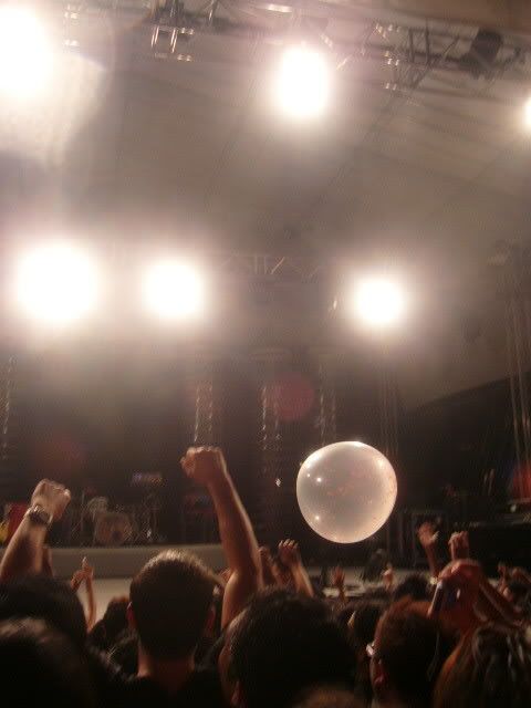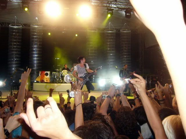 the mosh pit collapsed during HYSTERIA (chris' thumping bassline! :D) and i was around the outskirts but the whole circle of crowd of radius 5 people fell sideways and i thought i was gonna die cos i couldn't breathe..people fell on me, i'm pretty sure i fell on someone and loadsa people got pulled out..that was about the lowest point
